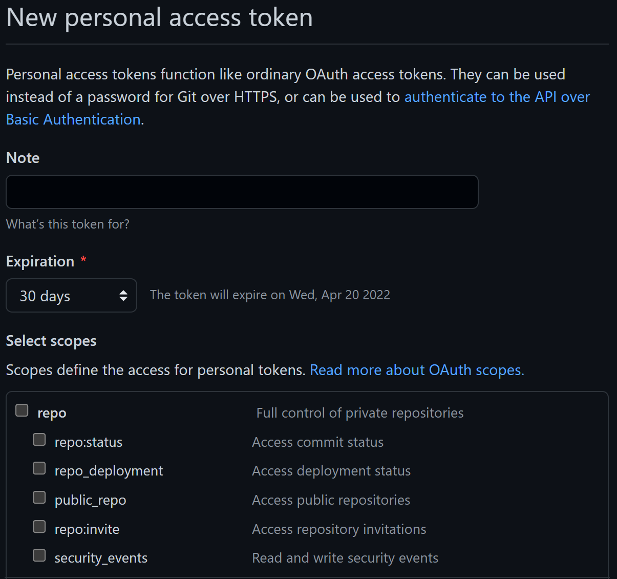 remote: Support for password authentication was removed on August 13, 2021. Please use a personal access token instead. remote: Please see https://github.blog/2020-12-15-token-authentication-requirements-for-git-operations/ for more information. fatal: Authentication failed for 'https://url'구글링 해보니, personal access token을 비밀번호 대신 입력하라는 것. 이거 필요할때도 있고 아닐때도 있던거 같은데 음..